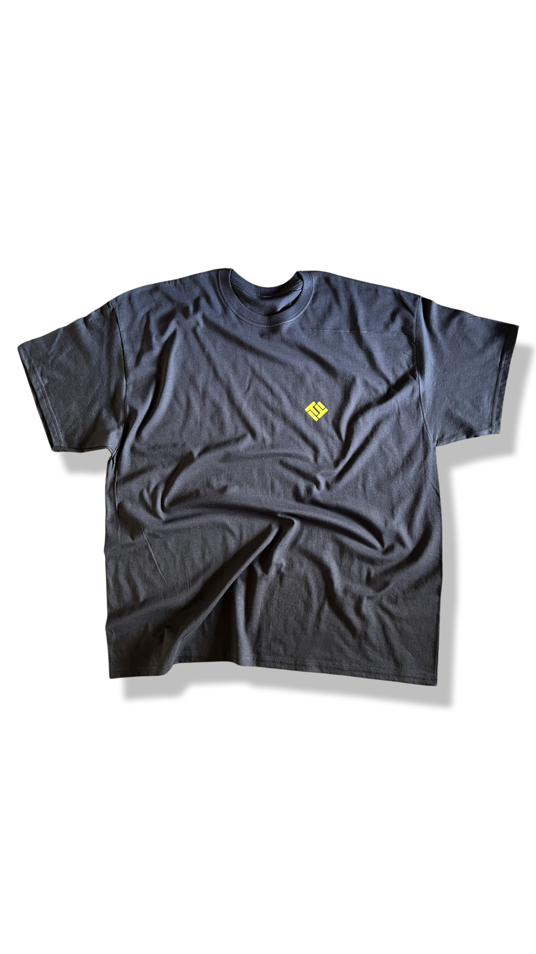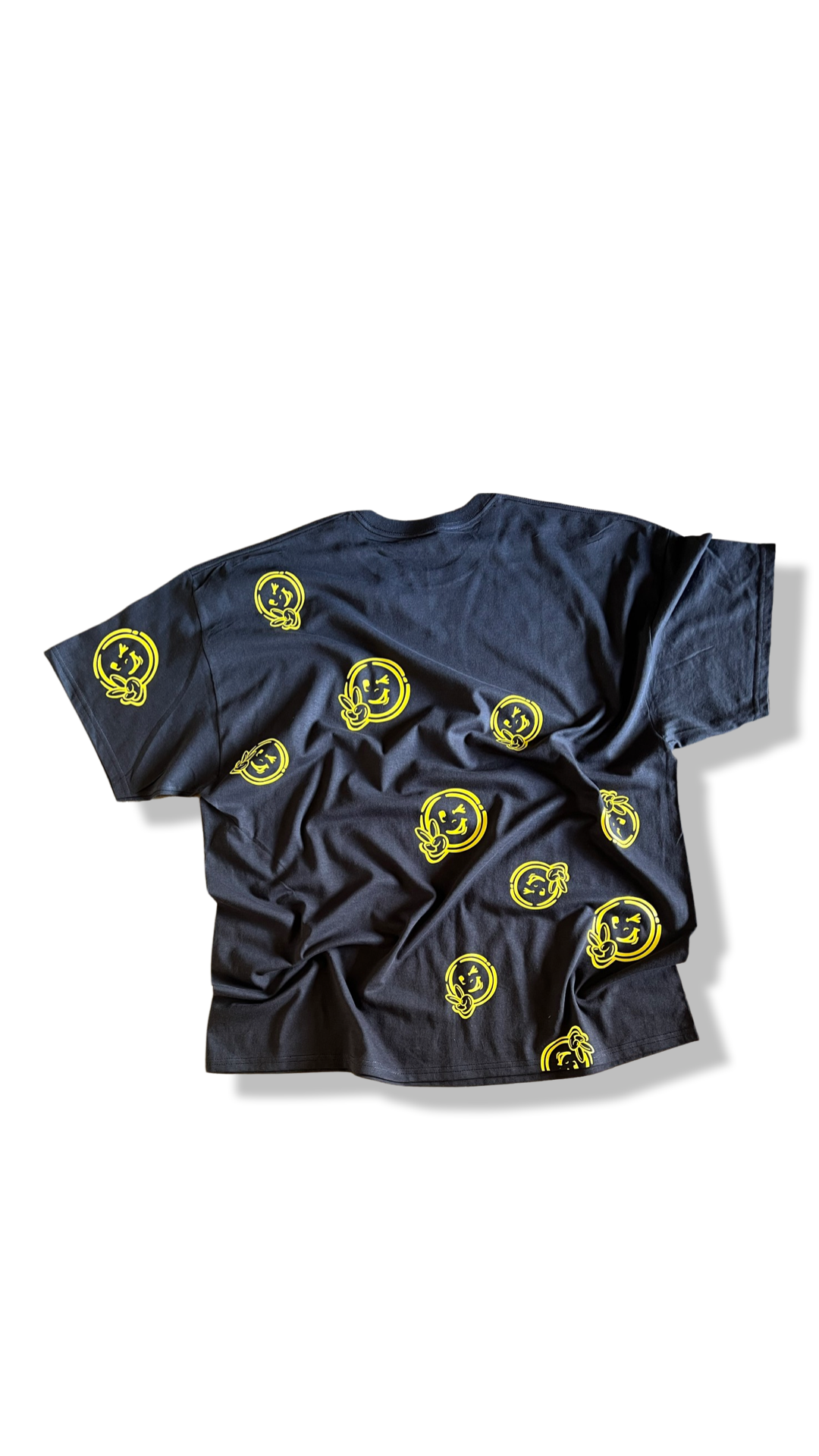 Brown cotton t-shirt with yellow logo over the left chest. Smileys in yellow across the back of the shirt. Shirts run true to size.